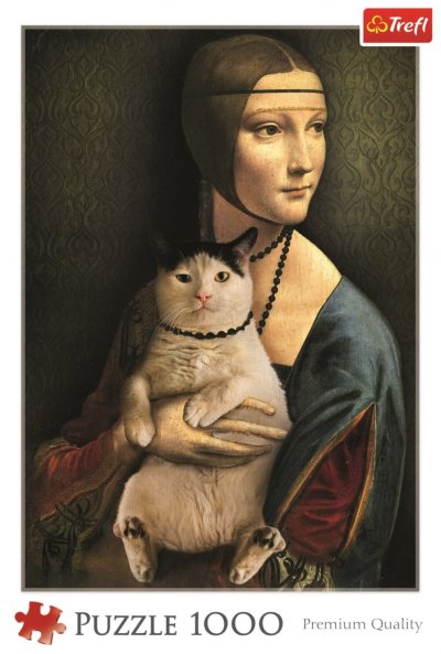 Puzzle - Dáma s kočkou. Počet dílků: 1000 Rozměr složeného puzzle: 48 x 68,3 cm Rozměr balení: 40 x 27 x 6 cm