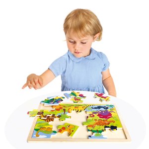 Dinosauři už sice dávno vymřeli, ale ještě dnes s nimi může být velká legrace. Dřevěná puzzle skládačka bude bavit i ty nejmenší milovníky zvířátek a všechny obdivovatele dávných ještěrů. Dřevěná skládanka je vyrobena z kvalitního materiálu.