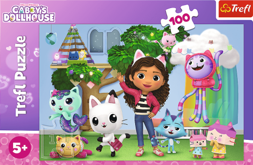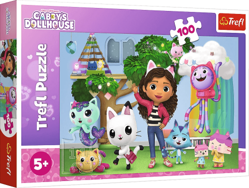 Domeček pro panenky Gabi je nová série pohádek, které dívky milují, protože příběhy jsou o malé holčičce, která je obklopena spoustou koček. Každý díl děti upoutá a příběhy pozorně sledují. Nyní si děti mohou složit vlastní obrázek, na kterém se objeví postavy z pohádky. Tento obrázek lze sestavit ze 100 prvků, které do sebe dobře zapadají. Díky krásnému, barevnému a ostrému tisku reprodukují vysoce kvalitní puzzle Trefl obraz, který zobrazují, mimořádně podrobně.