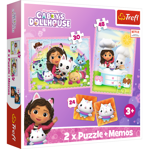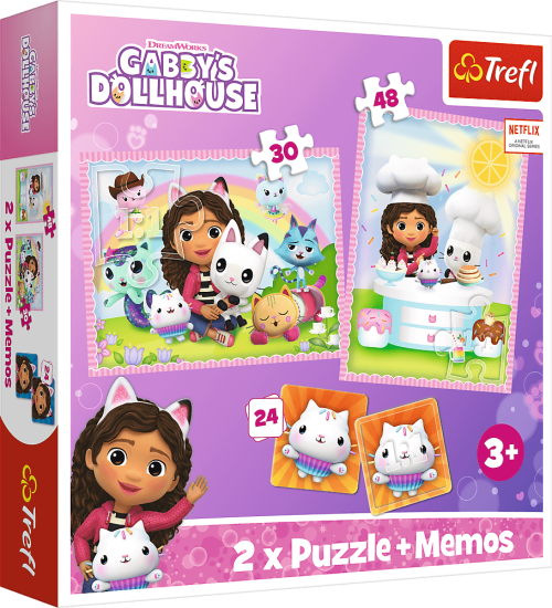 Balení obsahuje 2 puzzle (30 a 48 dílků) a pexeso. Vhodné pro děti od 3 let.