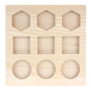 Dřevěná barevná skládanka pro děti, které se seznamují s geometrickými tvary. Skvělé pro cvičení představivosti a schopnosti kombinovat.
