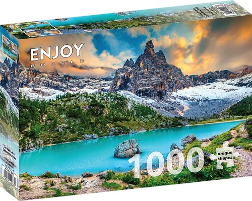 Puzzle Jezero Sorapis, Dolomity, Itálie. Počet dílků: 1000 Rozměry balení: 24 x 34 x 5 cm Rozměry puzzle: 48 x 68 cm