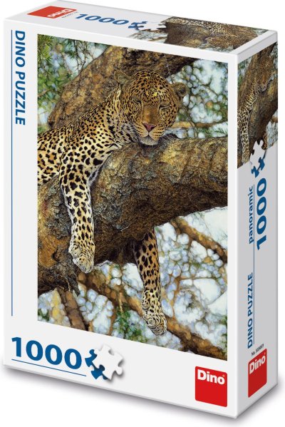 Objevte sílu a eleganci divokých zvířat s naším puzzle, které zobrazuje levharta na stromě.