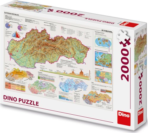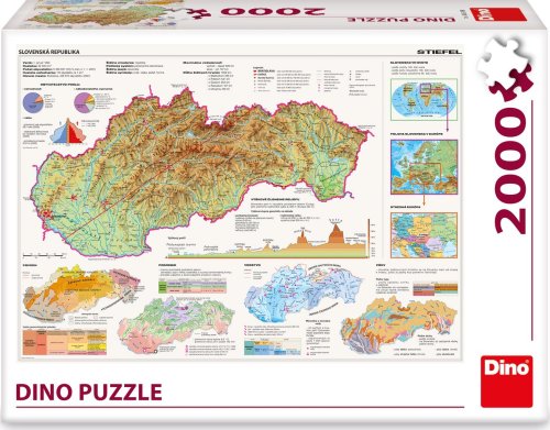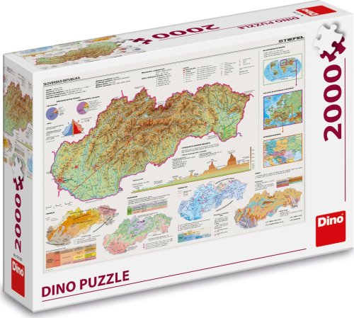 Sice je Slovensko od České republiky už pár let odděleno, to vám ale nebrání si ho zase pěkně pospojovat. Alespoň tedy z 2000 dílků puzzle. Pod rukama se vám rozprostře mapa celého státu, a to včetně světového a evropského kontextu či třeba geomorfologických údajů. Díky všem těmto vlastnostem může být puzzle mapa může být skvělou pomůckou i pro školáky. Rozměr balení: 32 x 23 x 7 cm Vhodné od 15 let