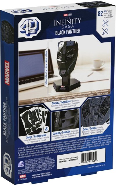 Tato 4D figurka Černého pantera si přímo říká o vystavení na vaší poličce! Vydejte se na superhrdinské dobrodružství s našimi stavebnicemi ze světa komiksů Marvel: The Infinity Saga. Tato sada 4D Build obsahuje stojánek, na který ji můžete postavit, až bude hotová! Získáte 8 listů s 82 propracovanými vyjmutelnými dílky a snadným návodem k sestavení. Není potřeba žádné lepidlo ani nářadí! Rozměry hlavy jsou 16 × 16 × 23 cm. Tento model se skvěle se hodí jako dekorace do ložnice, herny nebo k ostatním figurkám Avengers ‒ hrdě si ho vystavte. Pro nové mladé fanoušky Avengers ‒ toto puzzle je perfektním dárkem pro každého dospívajícího superfanouška. A pro dospělé fanoušky původních figurek superhrdinů také představuje perfektní hračku. Stavebnice 4D Build je fantastickým dárkem k narozeninám pro muže a dárkem pro něj! Ať už milujete Iron Manovu helmu, Thorovo kladivo, figurky Groota nebo Spider-Mana, toto puzzle 4D Build je přesně pro vás. Podívejte se na další modely s tematikou Avengers a Spider-Mana pro děti od 14 let. Vytáhněte si sbírku figurek Iron Mana a dalších marvelovských superhrdinů a začněte stavět!