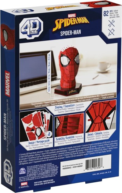 Pro fanoušky Marvelu ‒ tato 4D figurka Spider-Mana si přímo říká o vystavení na vaší poličce! Vydejte se na superhrdinské dobrodružství při sestavování s naším modelem ve filmové kvalitě. Tato stavebnice 4D Build obsahuje všechny propracované detaily typické pro Spideyho a navíc stojánek, na který ji můžete postavit, až bude hotová! Dostanete 8 desek s 82 vyjmutelnými dílky a snadným návodem na sestavení. Není potřeba žádné lepidlo ani nářadí! Rozměry hlavy jsou 16 × 16 × 22,2 cm. Tento model se skvěle se hodí jako dekorace do ložnice, herny nebo k ostatním figurkám Spider-Mana ‒ hrdě si ho vystavte. Pro nové mladé fanoušky Avengers ‒ toto puzzle je perfektním dárkem pro každého dospívajícího superfanouška. A pro dospělé fanoušky původních figurek superhrdinů také představuje perfektní hračku. Stavebnice 4D Build je fantastickým dárkem k narozeninám pro muže a dárkem pro něj! Ať už milujete Iron Manovu helmu, Thorovo kladivo, figurky Groota nebo ostatních Avengers, toto puzzle 4D Build je přesně pro vás. Podívejte se na další modely pro dospívající od 14 let. Vytáhněte si sbírku figurek Iron Mana a dalších komiksových superhrdinů a začněte stavět!