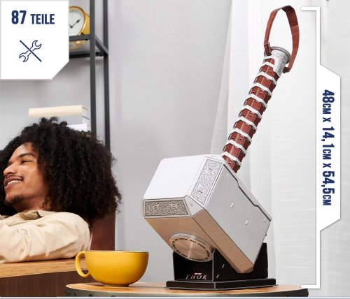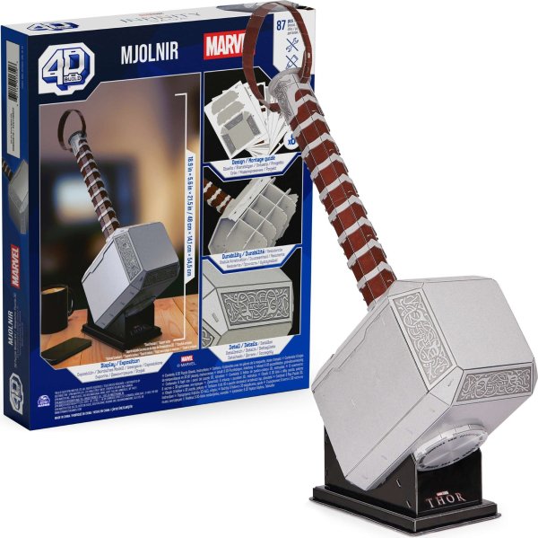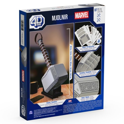 Tento 4D model Thorova kladiva Mjolniru si přímo říká o vystavení na vaší poličce! Vydejte se na dobrodružství superhrdinů s našimi 3D puzzle ze světa komiksů Marvel: The Infinity Saga. Tento 4D model Mjolniru obsahuje stojánek, na který ho můžete postavit, až bude hotový! Získáte 8 listů s 87 propracovanými vyjmutelnými dílky a snadným návodem k sestavení. Není potřeba žádné lepidlo ani nářadí! Jeho rozměry jsou 24,6 × 19 × 30 cm. Tento model se skvěle se hodí jako dekorace do ložnice, herny nebo k ostatním figurkám Avengers ‒ hrdě si ho vystavte. Pro nové mladé fanoušky Avengers ‒ toto puzzle je perfektním dárkem pro každého dospívajícího superfanouška. A pro dospělé fanoušky původních figurek superhrdinů také představuje perfektní hračku. Stavebnice 4D Build je fantastickým dárkem k narozeninám pro muže a dárkem pro něj! Ať už milujete Černého pantera, Iron Manovu helmu, figurky Groota nebo Spider-Mana, toto puzzle 4D Build je přesně pro vás. Podívejte se na další modely s tematikou Avengers a Spider-Mana pro děti od 14 let. Vytáhněte si figurku Iron Mana, Thora a další hračky s tematikou marvelovských superhrdinů a začněte stavět!