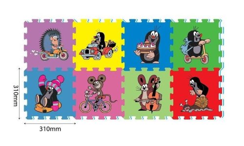 Pěnové puzzle Krtek 30×30cm 8ks Pěnové puzzle s oblíbeným Krtečkem a jeho kamarády. Balení obsahuje 8 puzzle o velikosti 30×30 cm. Hračka, ze které si děti mohou sestavit vlastní koš na hračky, knihovnu, hrací koberec na podlahu a spoustu dalších staveb a tvarů dle své zručnosti a fantazie. Puzzle jsou netoxické, bezpečné, lehké, omyvatelné a bez zápachu. Atestováno v ČR. Rozměry po sestavení: 60×120cm