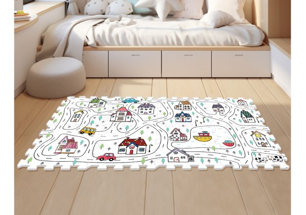 Puzzle pěnové město 8ks. Velikost 31,5x31,5 cm, tloušťka 1 cm.