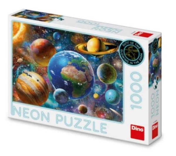 Neonové puzzle obsahující 1000 dílků. Svítí ve tmě. Roměr: 66x47 cm. Věk: 15+