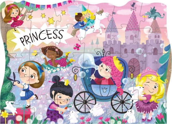 Zábavné a poutavé puzzle přenáší děti do světa princezen. Tato originální hračka kombinuje radost ze skládání puzzle s kreativním světem holčiček. Velikost složeného obrázku 20 x 27 cm. Balení obsahuje 30 dílků. Rozměry balení: 21 x 14 x 4cm Vhodné pro děti od 3 let.