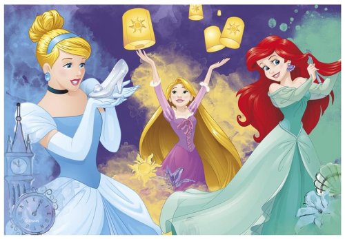 Dvě puzzle s motivem Disney princezen. Rozměr složeného puzzle cca 26 x 18 cm