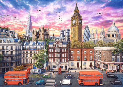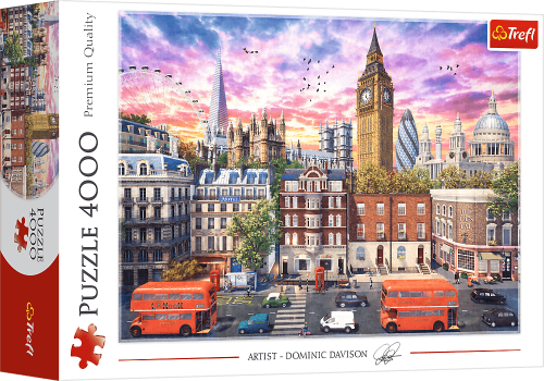 Puzzle - Procházka Londýnem. Počet dílků: 4000 Rozměr složeného puzzle: 139 x 96 cm Rozměr balení: 27 x 40 x 9 cm