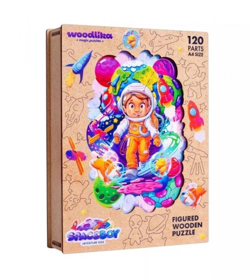 Barevné, poučné a napínavé – takové by měly být dětské puzzle. Jistě vás zaujme více jak sto výrazně barevných detailů s úžasnými vzory. Překvapte své dítě skvělým dárkem. Snad každý kluk se někdy toužil stát kosmonautem. Jednotlivé dílky puzzle pomohou vašemu dítěti ponořit se do světa vesmírných dobrodružství a objevů. Každý dílek dřevěných puzzle má jedinečné a přesné fantastické tvary – od různých druhů kouzelných hůlek po hvězdy či magická zvířata. 120 dílků z kvalitního dřeva, z toho 35 dílků zaujme děti svými originálními tvary. Skládání puzzle zlepšuje paměť, pozornost a motoriku dítěte. Je dokázáno, že také pozitivně ovlivňuje mozkovou činnost dětí. Ty při hře ani nevnímají, že se tím zároveň i učí a rozvíjejí svoji představivost.