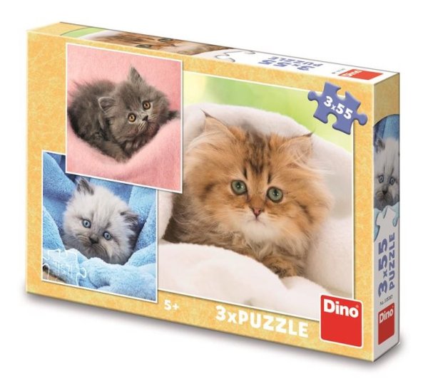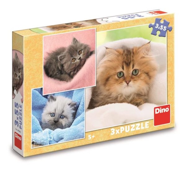 Tři puzzle pro děti s různým motivem se stejným počtem dílků a rozměrem. Rozměr složeného puzzle cca 18 x 18 cm