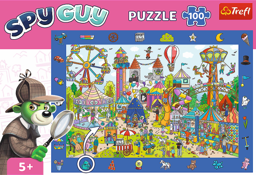 Jedinečné spojení skládání puzzle a hledání motivů v poskládaném obrázku. Puzzle ze série Spy Guy od výrobce TREFL slibuje zábavu i po vložení posledního dílku na své místo. Po poskládání obrázku se totiž můžete pustit do zábavné hry. Po stranách rámečku jsou vyobrazené nejrůznější motivy. Ty se schovávají i na poskládaném motivu. Vaším úkolem je najít všechny obrázky, které zdobí barevný rámeček puzzle.