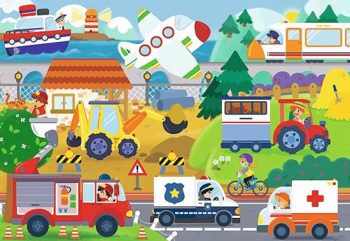 Puzzle s otvíracími okénky 36dílků - Dopravní prostředky