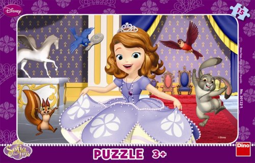 Dětské deskové puzzle (dílky se skládají přímo na přiloženou podložku s rámečkem) s oblíbenou Sofií.