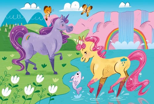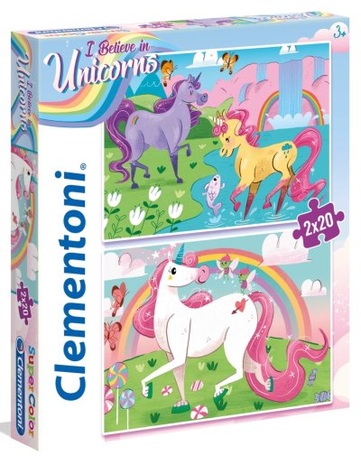 Dvě dětská puzzle každé s 20 dílky s motivem oblíbených jednorožců. Dětské puzzle ze série Briliant září jako drahokam. CLEMENTONI Brilliant puzzle je pokryto speciální lesklou vrstvou s diamantovým efektem, která zaručuje krásný a zářivý vzhled. Puzzle SuperColor Collection - edice navržená speciálně pro děti, pomáhá jim rozvíjet manuální zručnost a schopnost pozorování. Kvalita materiálů a exkluzivní technika tisku zaručují trvale krásné, živé a zářivé barvy. Doporučeno pro děti od 3 let. Rozměr složeného puzzle cca 27 x 19 cm