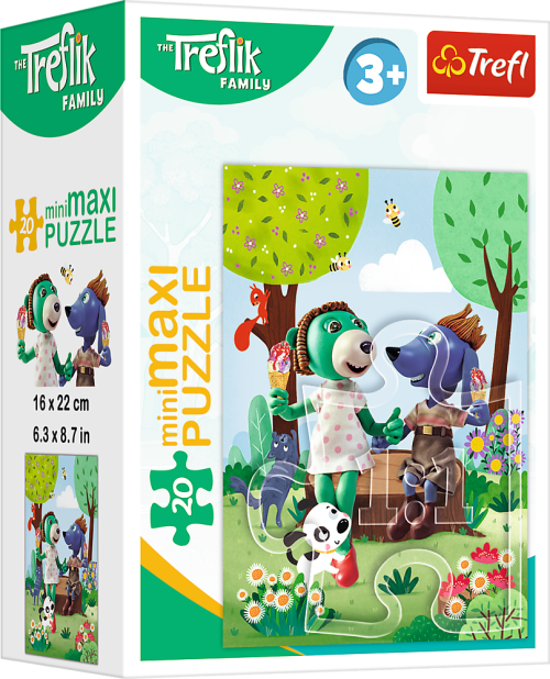 Mini maxi Puzzle (dílky 4,2 cm, baleno v malé krabičce) ze série Treflíci. Rozměr složeného puzzle cca 16 x 22 cm
