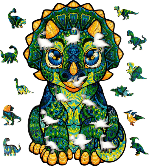 17 unikátně tvarovaných dílků z éry dinosaurů hladké hrany bez třísek díky preciznímu laserovému zpracování vyrobeno z tvrdého bukového dřeva doba skládání až 3 hodiny baleno v dřevěné dárkové krabičce a jutové tkanině horní část krabičky slouží jako předloha skládaného motivu - v balení najdete dva dílky sloužící jako stojánek vyrobeno v České republice