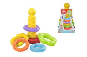 Pyramida s barevnými kroužky napomáhá rozvoji motoriky a schopnosti kombinování. 5 barevných kroužků různých tvarů. Výška pyramidy 20 cm. Materiál plast.
