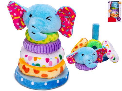 Pyramida slon 21 cm plyšová s pískátkem a kroužky 4 ks