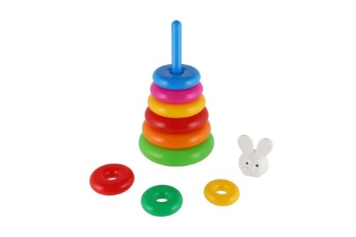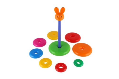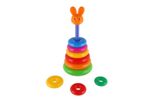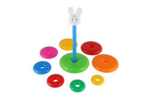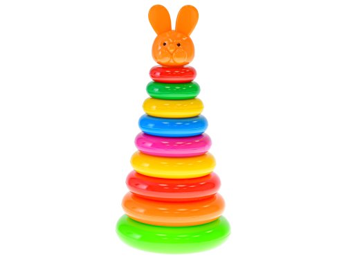 Skládačka pyramida s kroužky, díky které se děti učí rozeznávat barvy a velikosti. Hračka rozvíjí motorické schopnosti dítěte a logické myšlení. Pyramida je z měkkého plastu a je vysoká 30 cm. Dva druhy - zajíček, pyramida.