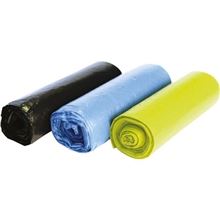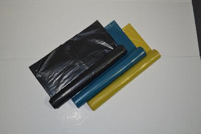 Sada barevných LDPE pytlů (černý, modrý, žlutý) v roli pro barevné třídění odpadů Balení 3 x 5 pytlů, 40 mic, 120,0 l Výrobek z chráněných pracovních míst – koupí podpoříte zaměstnanost zdravotně znevýhodněných …
