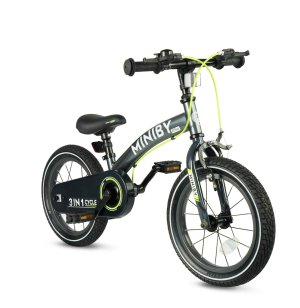 Představujeme kolo MINIBY 3v1 (14-palcové). Nastavitelná výška řídítek a sedáku pro rostoucí děti. Mezi bezpečnostní prvky patří uzavřený ochranný kryt řetězu, odnímatelné pedály, tréninková kolečka a dvojitý brzdový systém. Pneumatiky odolné vůči propíchnutí poskytují stabilitu v různých terénech. Všestranný a odolný společník pro jízdu navržen tak, aby rostl spolu s vaším dítětem.