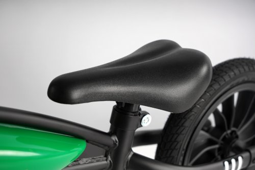 Nafukovací 12palcová kola zabezpečují stabilitu a bezpečnost na jakémkoli povrchu. Speciální mechanismus (kuličkové ložisko) umožňuje snadné otáčení kol bez zablokování. Kolo je vybaveno nastavitelným, pohodlným sedlem, které kopíruje růst dítěte.