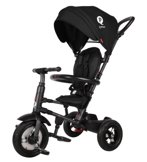 QPLAY Tříkolka Rito air gel (Rubber) Black, věk 10-72 měsíců