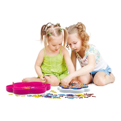 Video je pouze ilustrační, zobrazuje příbuzný produkt. Nechejte děti kreativně odpočívat při tvorbě rozmanitých květinových obrazců. Umisťováním různobarevných kolíčků do děrované desky, ať už s pomocí přiložených předloh, nebo vlastní fantazie, mohou rozvíjet představivost, soustředění a trpělivost. Díky praktickému balení v podobě květiny lze mozaiku snadno uklidit, zároveň také před tvorbou vytřídit kolíčky dle barev. Vyrobeno z kvalitního plastu, který je pevný, odolný a zároveň nezávadný. Hlavní vlastnosti:1200 kolíčků (6 barev) a 6 předlohpraktické balenívyrobeno v Itálii