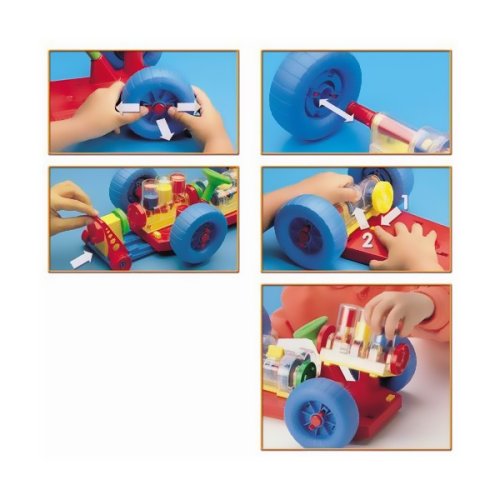 Důmyslná hračka, která přímo vybízí děti i jejich rodiče k zjištění, jak takové opravdové auto funguje. Všechny základní mechanické funkce jsou zde přesně reprodukovány. U motoru děti uvidí, jak pracují válce a kliková hřídel a jak jsou spojeny s převodovkou, která má funkční řazení o 3 polohách (neutrál, 1. a 2. stupeň). Diferenciál přenáší pohyb na zadní kola a umožňuje jejich otáčení nezávisle na sobě. Všechny mechanické části lze snadno připojit k podvozku a stejně tak je lze uvolnit speciálními odpruženými žlutými tlačítky. Volant funguje a umožňuje autu zatáčet nebo zajíždět do parkoviště. Děti mohou auto rovněž vpředu a vzadu zvednout pomocí speciálních vozíčků a otáčením kliky u předního z nich uvádět celý mechanismus do pohybu. Při řazení jednotlivých rychlostních stupňů uvidí, jak se bude měnit rychlost pohybu kol a válců. Při zařazení neutrálu si rovněž všimnou, jak se motor a diferenciál navzájem odpojí. Určeno dětem od 3 let. Hlavní vlastnosti: základní mechanické funkce jsou reprodukoványfunkční volant a mechanické částipro děti od 3 let