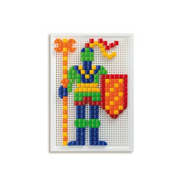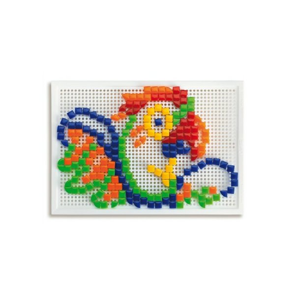 Mozaiky u dětí rozvíjí jemnou motoriku, tvořivost a fantazii. Skládají se z kufříku, děrované hrací desky a barevných kolíčků s hlavičkami různých barev, průměrů a tvarů. Pomocí těchto kolíčků, které se zasazují do otvorů v hrací desce, tvoří děti různé obrázky nebo vzory. Po skončení hry lze vše uložit do kufříku, jehož víko po zajištění pojistkou tvoří sama hrací deska. Vyrobeno z plastů špičkové kvality. Hlavní vlastnosti: rozvíjí jemnou motoriku, tvořivost a fantaziiobsahuje 300 knoflíků ve tvaru čverečků a trojúhelníků