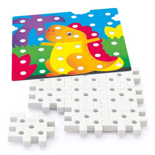 Dokážeš vložit velké barevné kolíčky na správná místa? Mozaiková sada Jumbo Peggy umožňuje vstup do světa kolíčkových her dětem již od 2 roku. Lze tvořit podle předlohy nebo můžete obrázky odložit stranou a podložka s kolíčky se rázem promění v originální stavebnici (souprava tak vlastně přináší dvě hry). V malých rukách se velké kolíčky skvěle drží. Obsah balení:9 vzájemně propojitelných perforovaných podložek 36 velkých kolíčků (průměr 33 mm) v 6 barvách4 oboustranné karty s předlohami Hlavní vlastnosti: rozvíjí koordinaci, jemné motorické dovednosti, tvořivost a plánovánílze hrát na 2 způsobypro děti od 2 let