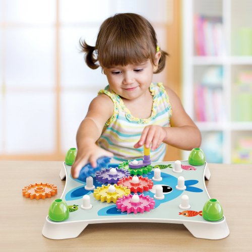 Uspořádejte kartu, zařaďte převody, otočte klikou a sledujte velkolepou řetězovou reakci, která překvapí a potěší všechny děti. Dítě se naučí základní principy mechaniky a užije si přitom spoustu zábavy. Nerozbitné a bezpečné. Vyrobeno z plastů špičkové kvality. Obsah balení:1 bílá základna1 klika7 barevných převodů3 oboustranně ilustrované karty Hlavní vlastnosti: rozvíjí jemnou motoriku, tvořivost, fantazii a logicko-kombinační myšleníbalení obsahuje 13 dílkůpro děti od 2 let