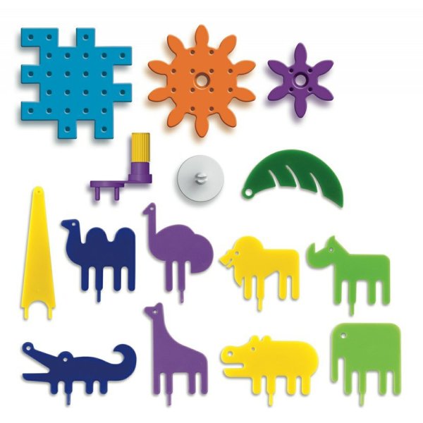 Převodové stavebnice Georello rozvíjí jemnou motoriku, tvořivost, fantazii a logicko-kombinační myšlení. Skládají se z perforovaných desek, os, převodových kol, figurek domácích či divokých zvířátek a stromů. Pomocí kličky lze celý mechanismus uvést do pohybu a vše se otáčí jako na kolotoči.Každá stavebnice je kompatibilní s ostatními stavebnicemi řady Georello. Vyrobeno z plastů špičkové kvality. Oceněno titulem „Správná hračka“. Hlavní vlastnosti: rozvíjí jemnou motoriku, tvořivost, fantazii a logicko-kombinační myšleníbalení obsahuje 50 dílkůpro děti od 4 let