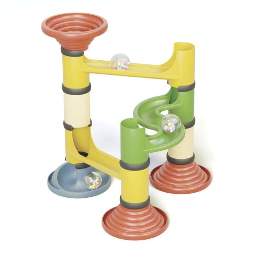 Díky stavebnici Migoga Junior si i menší děti mohou hrát s kuličkovou dráhou, která byla vytvořena speciálně pro ně. Všechny díly stavebnice jsou veliké a mají různé barvy, aby se daly od sebe snadno rozeznat. Spojení jsou snadná a intuitivní, což umožňuje rychle postavit různé dráhy. Vyrobeno z udržitelných a 100% recyklovatelných materiálů v sérii PlayBio. Vhodné pro děti od 18 měsíců. BIO PLAST OD SPOLEČNOSTI QUERCETTI.Jaké jsou výhody bioplastů? Jak se získává? Řada hraček Quercetti PlayBio je vyrobena z inovativní biosložky z dřevěných vláken a plastu. Tato volba výrazně snižuje emise CO2 při výrobě. Použité dřevo pochází z udržitelných certifikovaných lesů. Hračka z tohoto bioplastu je odolná, příjemná na dotek i na pohled a také na čich: cítíte nezaměnitelnou vůni dřeva. Když je třeba jej zlikvidovat, lze jej 100% recyklovat. Obsah balení: 2 přímé dráhy1 S dráha3 stojánky1 sběrný stojánek na kuličky3 velké chrastící kuličky Hlavní vlastnosti: zvuková hračkakoordinaci ruka-okorozvíjí zručnost a smysly dětíkreativní myšlení