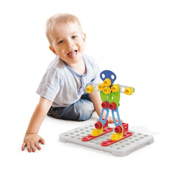 Šrouby, matice, křídlové matice, kola a perforované dílce z odolného, netříštivého plastu je možné sestavovat bez použití jakéhokoli nářadí. Děti budou potřebovat jen své ruce a představivost. Tato sada totiž obsahuje všechno, co je nezbytné k sestrojení robotů, zvířat nebo čehokoli dalšího, co jim přijde na mysl. Díky perforované podložce je možno sestavovat horizontální i vertikální konstrukce. Stavebnice Tecno Jumbo starter set rozvíjí koordinaci, logické myšlení i tvořivost a zábavnou formou pomáhá dětem pochopit základní principy mechaniky. Oceněno titulem "Správná hračka". Obsah balení: 18 dvojrozměrných dílců se závity4 trojrozměrné dílce se závity28 šroubů, matic a podložek2 kola1 album s 6 příklady modelů: pejsek, plachetnice, náklaďák s jeřábem, auto, dva různí roboti Hlavní vlastnosti: rozvíjí jemnou motoriku, tvořivost a fantaziipraktický kufřík pro uloženíobsahuje 52 dílků Označení „Správná hračka“ je udělováno produktům, které cílí na děti předškolního věku a vynikají zejména výchovnými kvalitami, ale i vysokým standardem zpracování, komfortem používání a estetickou úrovní. Záměrem tvůrců ocenění je poskytovat vodítko a oslovovat rodiče i pedagogy, kteří chtějí ovlivňovat směřování nabídky a za prvořadý považují zdravý osobnostní rozvoj dětí. Tím chtějí tvůrci podněcovat k rozšiřování a vývoji nových hodnotných hraček či her. Označení je udělováno od roku 1994 a je společným projektem Sdružení pro hračku a hru, Asociace hračka Unie výtvarných umělců ČR a Asociace předškolní výchovy. Tato sdružení společně s Uměleckoprůmyslovým muzeem v Praze a Městským muzeem v Kamenici nad Lipou udělují ocenění při příležitosti festivalu Hračkobraní konajícího se každoročně od roku 2006 na zámku v Kamenici nad Lipou, kde můžete mimo jiné zhlédnout stálou expozici všech oceněných hraček.