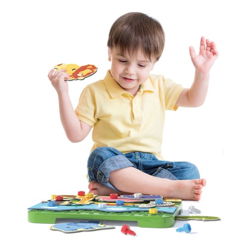 Zažijte dobrodružství se zvířátky v divoké džungli či horké savaně! V této dětské stavebnici z perforovaných dílů a propojovacích šroubků můžete snadno sestavět scenérii jako z divočiny. Čekají na vás tři tematická pozadí s devíti exotickými zvířaty jako např. lev, hroch či hrozivý krokodýl. Skládání vlastních obrázků je velmi snadné a zvládnou je i malé ručičky. Upevňovací šroubky jednoduše utáhnete i povolíte bez pomoci nářadí. Kromě manuální zručnosti hračka rozvíjí také fantazii dětí (mohou o zvířátkách vyprávět všemožné příběhy). Hlavní vlastnosti: rozvíjí manuální zručnost a kreativitutéma džungle, savanapro děti od 3 letobsahuje 33 dílků