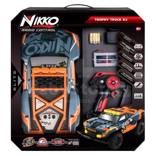 RC model Elite Trophy Trucks 1:10. Detailně zpracovaný terénní vůz na dálkové ovládání pro náročné off-road jízdy. Model je vybaven odolnou karoserií, gumovými pneumatikami s hlubokým vzorkem a realistickým odpružením. Poháněn dobíjecími bateriemi, ovládán 2,4 GHz dálkovým ovladačem, dosahuje rychlosti až 20 km/h s provozem cca 20–30 minut.