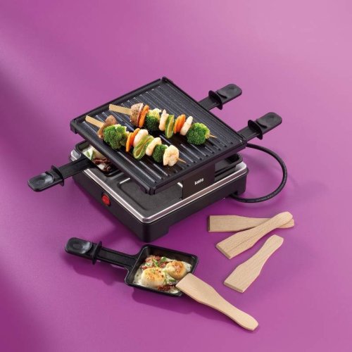 Tato sada na grilování je ideální pro přípravu pokrmů pro čtyři osoby. Obsahuje litý hliníkový talíř, čtyři nepřilnavé pánve a čtyři dřevěné špachtle. Díky kompaktním rozměrům 21,5x21,5 cm a výšce 12 cm je snadno přenosná a vhodná pro použití doma i na cestách.