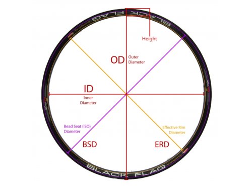 Výpočet pro rozměr 622:(hodnota ETRTO 622,3 mm (viz. na uvedeném obrázku označeno BSD). + 2x výška háku + 2x tloušťka stěny hřbetu – 2x výška ráfku (viz. na uvedeném obrázku označeno HEIGHT).