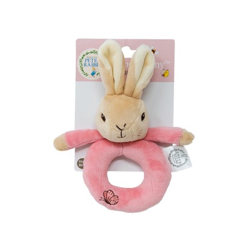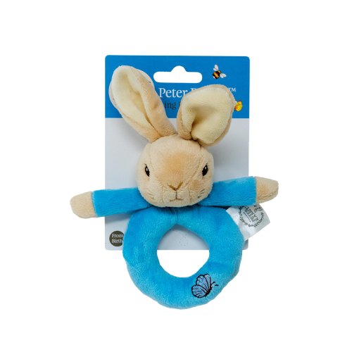 Super měkké chrastítko s králíčkem Petrem a Flopsym z příběhu Beatrix Potter. Perfektní první hračka pro děti. Má velikost tak akorát pro dětské ruce a procvičí smysly dětí. Králíček Petr je modrý, Flopsy je růžový, oba jsou plyšoví a mají na části kroužku výšivaného motýlka. Vhodné již od narození.