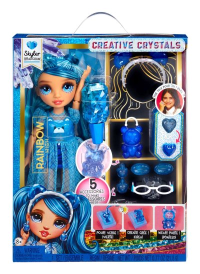 Obsah balení: 1 Creative Crystals Panenka Skyler Bradshaw s pohyblivými klouby a česatelnými vlásky Módní outfit a doplňky Set na výrobu doplňků imitujících krystaly