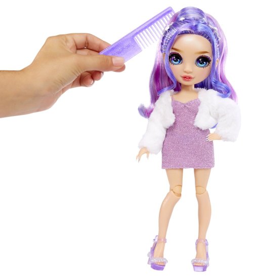 Obsah balení: • 1 panenka s dlouhými česatelnými vlásky • 2 outfity • módní boty a vlasové doplňky • skicář a tužka • hřeben • stojánek na panenku