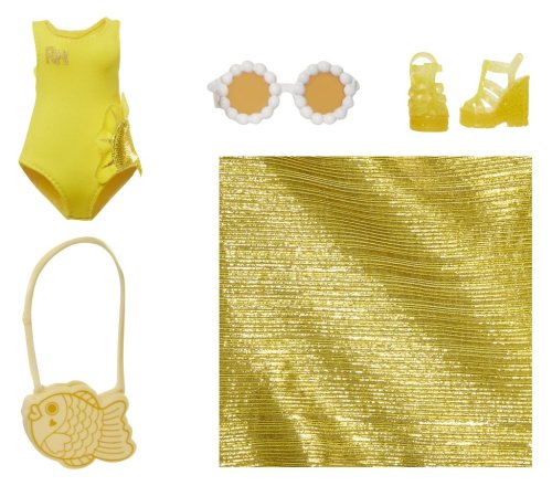 Obsah balení: • 1 ze 4 panenek v plavkách • letní doplňky (brýle, kabelka, boty a další)