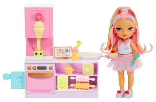 Objev kouzelný svět s herní sadou s malou sestřičkou. Čeká na tebe úžasná panenka velikosti 15 cm a její cukrárna. V cukrárně můžeš péct ty nejbarevnější dobroty! Sada obsahuje 5 veselých barevných těst, takže můžeš tvořit sladkosti znovu a znovu.