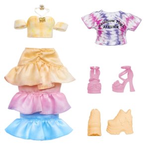 Udělejte si svou vlastní Rainbow High panenku! V balení najdeš panenku s bílými vlasy oblečenou od hlavy k patě do bílé barvy a 6 smývatelných duhových prášků (červený, oranžový, žlutý, zelený, modrý a fialový), gumičky k batikování a aplikační houbičku. Existuje nekonečně mnoho způsobů, jak vybarvit oblečení panenky nebo její vlasy. Po dokončení můžeš panenku opláchnout a vybarvit ji úplně jinak. Prášek nasypeš do vody. Do barevné vody můžeš namočit vlasy a oblečení, nebo houbičku, kterou budeš vytvářet vzory. Pomocí gumiček svaž oblečení a vytvářej různě batikovaný outfit.
